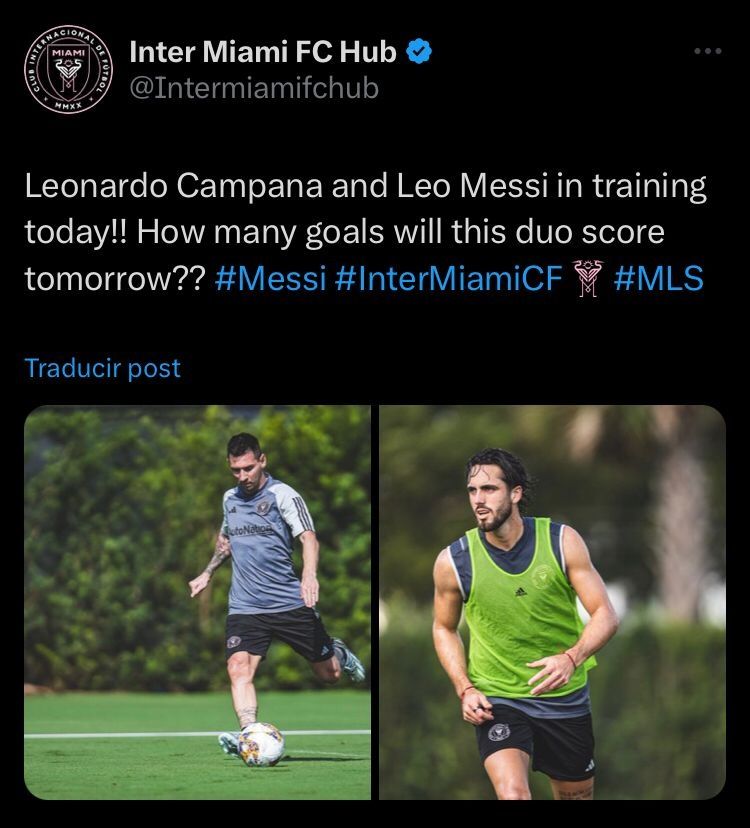 Hoy en el Inter existen varias figuras con Messi a la cabeza, el argentino podría volver a las canchas de la MLS luego de su paso por su seleccionado. El equipo en sus redes sociales publicó una imagen de Lionel Messi entrenando y junto a al campeón del mundo esta Campana con la frase: “Leonardo Campana y Leo Messi en el entrenamiento de hoy!! ¿Cuántos goles marcará este dúo mañana?”