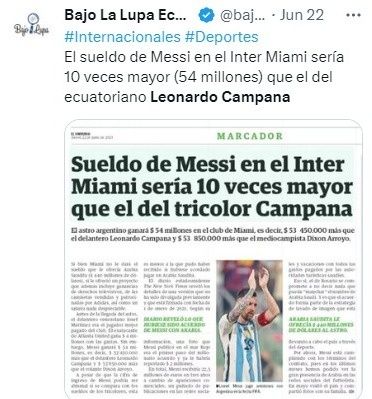 Diario El Universo publicó que “ el astro argentino ganará $54 millones en el club de Miami”. Una cifra superior si se compara el valor de mercado de equipos como Barcelona SC y LDU. Según los datos de Transfermarkt, todo el plantel del actual BSC vale 13.85 millones de euros, mientras que la plantilla Alba cuesta 16.98 millones de euros. Así, se transformen a dólares esas cantidades no superan lo de Messi, quien tendría todo la capacidad para adquirir los dos planteles si así lo deseara.
