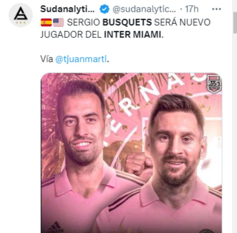 Según el portal de datos sobre fútbol, Sudanalytics, el español “Sergio Busquets será nuevo jugador del Inter Miami”. Una buena noticia para el conjunto norteamericano. El nacido en Sabadell cuenta con una gran trayectoria en el FC Barcelona y la Selección Española, donde fue figura y poseedor de la cinta de capitán.