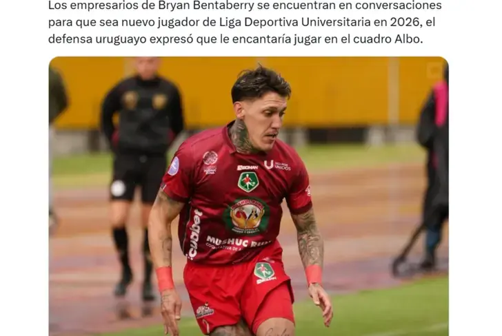 Con su contrato cerca de finalizar con Mushuc Runa, el defensor uruguayo se perfila como uno de los refuerzos más importantes y probables de LDU para 2026. El hecho de que Bentaberry quede libre en diciembre es un factor clave que abarataría su fichaje para el Rey de Copas, permitiendo a la dirigencia enfocarse en un acuerdo contractual satisfactorio para el jugador que ha manifestado públicamente su anhelo de jugar en el Estadio Rodrigo Paz Delgado.