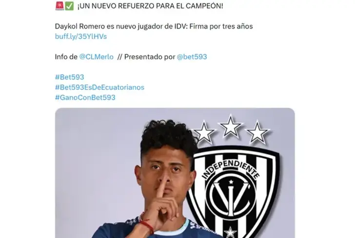 El gran giro en la carrera de Daykol Romero se da ahora con su fichaje por el Independiente del Valle (IDV), el club reconocido como una de las mejores vitrinas y formadoras de talento en Sudamérica. La noticia fue confirmada por el periodista especializado en fichajes César Luis Merlo, quien aseguró que el lateral ecuatoriano se incorporará a las filas de los Rayados.