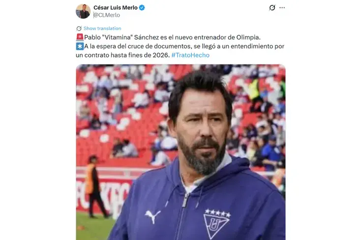 La carrera del entrenador argentino Pablo "Vitamina" Sánchez ha tomado un nuevo e importante rumbo en el fútbol sudamericano. Luego de una etapa marcada por el éxito deportivo y una polémica salida en Ecuador, Sánchez ha sido anunciado como el nuevo director técnico del Club Olimpia de Paraguay. El fichaje fue confirmado por el periodista César Luis Merlo, quien detalló que se ha llegado a un entendimiento para un contrato que se extendería hasta finales de 2026, a la espera de la firma final de los documentos.