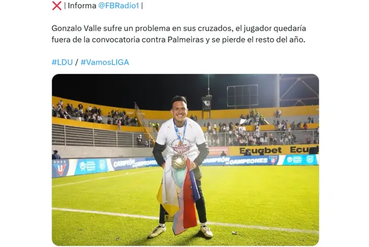 La confirmación del problema en los ligamentos cruzados de Gonzalo Valle es una noticia que entristece al fútbol ecuatoriano. La lesión le impedirá defender el arco de LDU en las semifinales de la Libertadores ante Palmeiras y lo dejará fuera de competencia por el resto del año. El club y la afición pierden a su guardián en el momento de mayor exigencia, y ahora tendrán que apoyarse en la experiencia de sus otros porteros para seguir soñando con la gloria continental.
