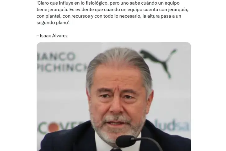 Aunque no lo menciona directamente en esta cita, esta declaración de Álvarez se alinea con un argumento histórico utilizado por el club: si la altura fuera el factor clave, los clubes de las ciudades andinas, incluidos los de Bolivia (con altitudes incluso mayores), serían los campeones habituales de los torneos continentales. Liga de Quito es el único club de altura en Sudamérica que ha ganado la Copa Libertadores, un hecho que refuerza la idea de que la calidad del proyecto deportivo y la jerarquía son las verdaderas claves del éxito internacional.